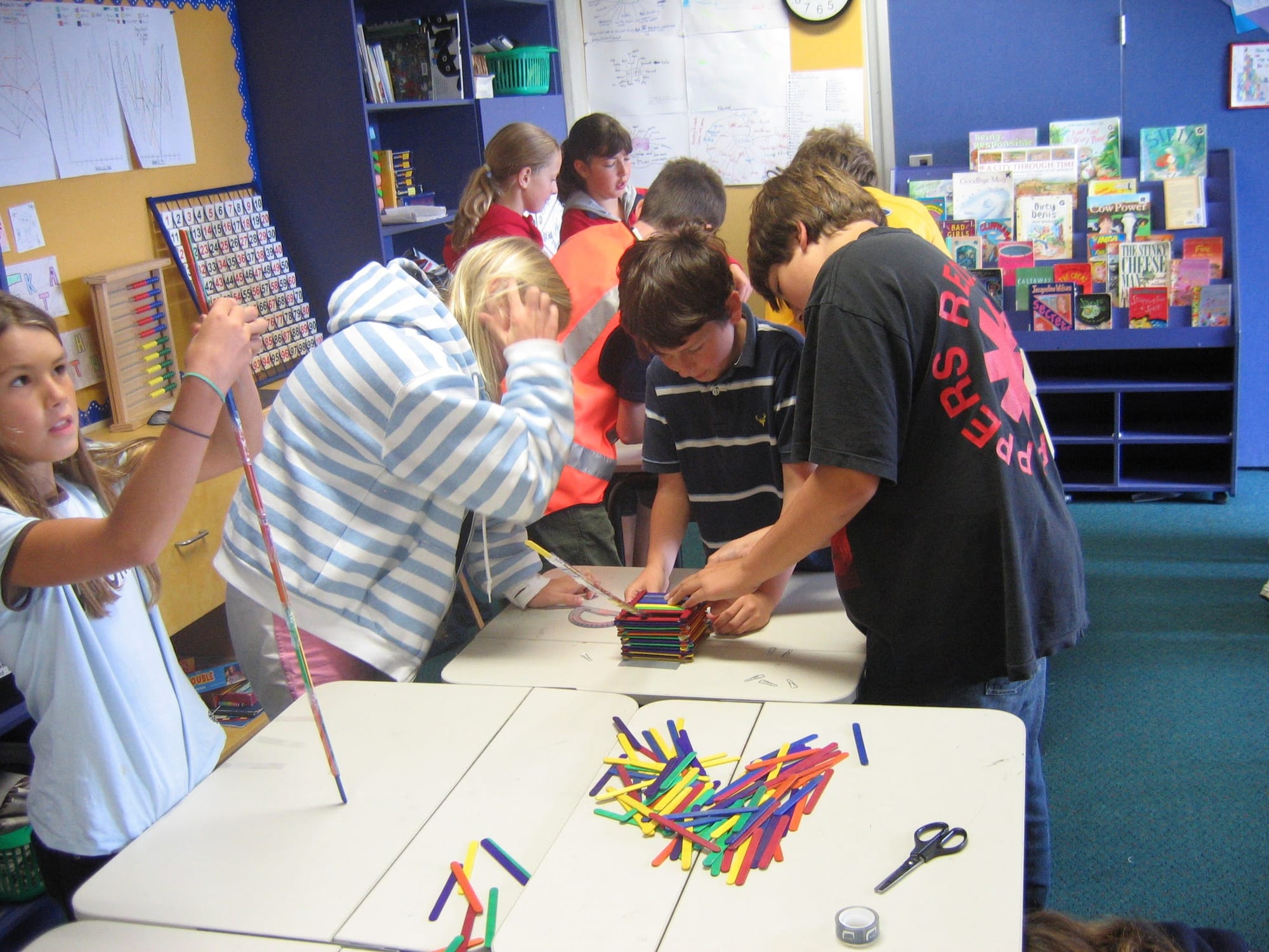 The challenge is simple: Construct a cantilever that extends the furthest past a set point - in this case a piece of duct tape. The measurement ends when the beam touches the table.
